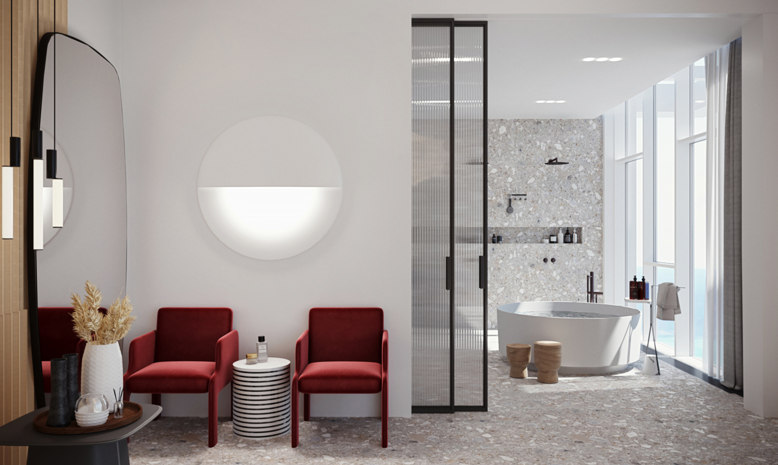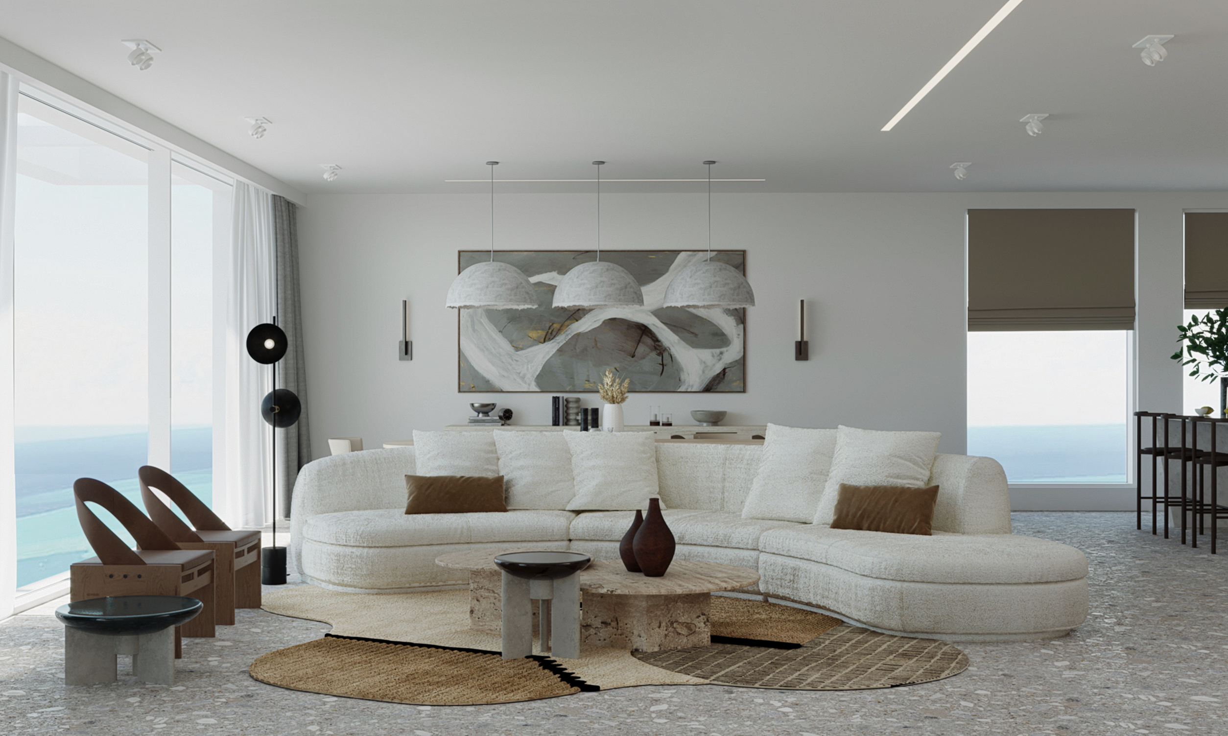 כבר מהרגע הראשון היה ברור שהים והחולות יהיו נוכחים כאן בעיצוב, ולא רק כנוף מעורר חושים מעבר לוויטרינות. הפנטהאוז שוכן אל מול חוף ים זהוב,